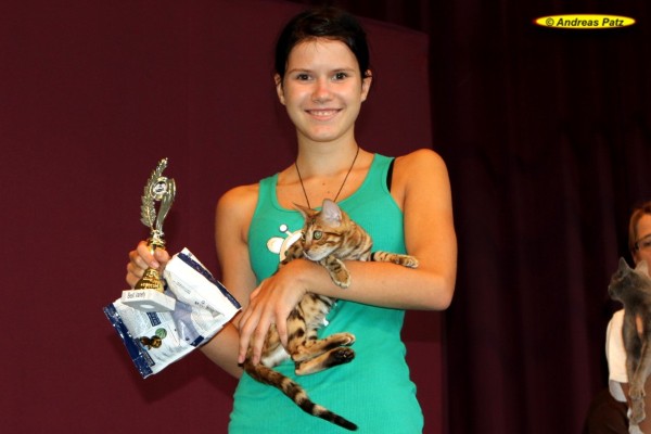 Wild Like Me hat den Titel "Best of Best" gewonnen, das heißt, das sie die beste Kurzhaarkatze der Ausstellung war und was uns ganz besonders stolz macht: Sie war auch die beste Bengalkatze der Schau.