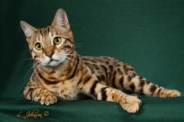 Bronte war der Überraschungssieger der On Safari 2014 in Houston/Texas. Die TICA On Safari bei den Bengalen ist vergleichbar mit der Weltmeisterschaft im Sport. Bronte konnte gleich mehrere Titel holen. Er wurde für den besten Kopf, den besten Schwanz, den besten Körperbau und als bester Bengalkater ausgezeichnet. Solche Ausnahmetiere kann man normalerweise nicht kaufen, daher sind wir sehr stolz, dass wir ihn bekommen konnten.