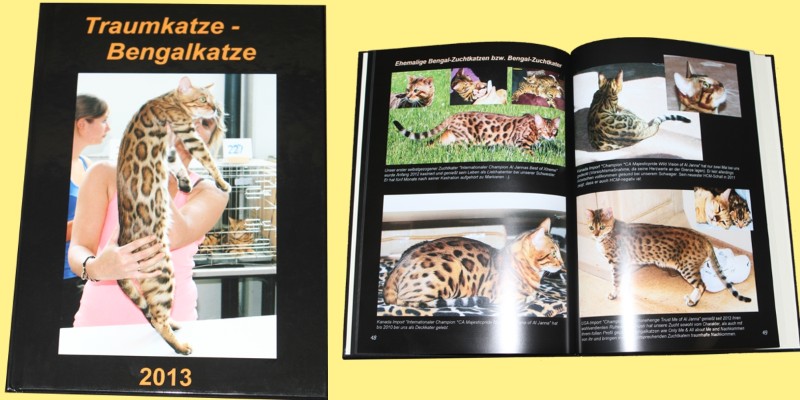 Ein hochwertiges Fotobuch mit 60 Seiten. Unsere Bengalkatzen werden mit über 100 Bildern vorgestellt (aktive Zuchtkatzen und Kastraten, zusätzlich einige Kittenbilder).