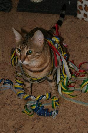 - Die Bengalkatze ist sehr verspielt, oft hält der Spieltrieb ein Leben lang an. Ihr sollten ausreichend Spiel-, Kratz- und Klettermöglichkeiten bereitgestellt werden. Bengalen nutzen diese regelmässig und lassen die Couch und andere Möbel in Ruhe. Man sollte möglichst mehrere Zimmer zur Verfügung haben, da die Bengalkatze bzw. Bengalkater recht lebendig sind.